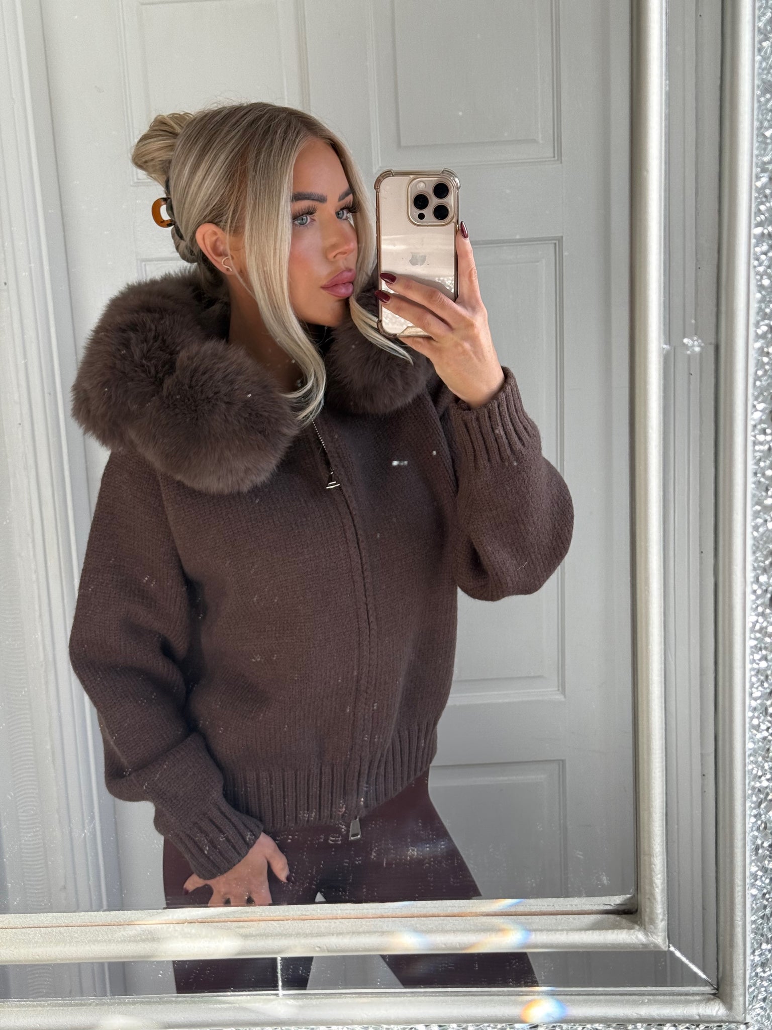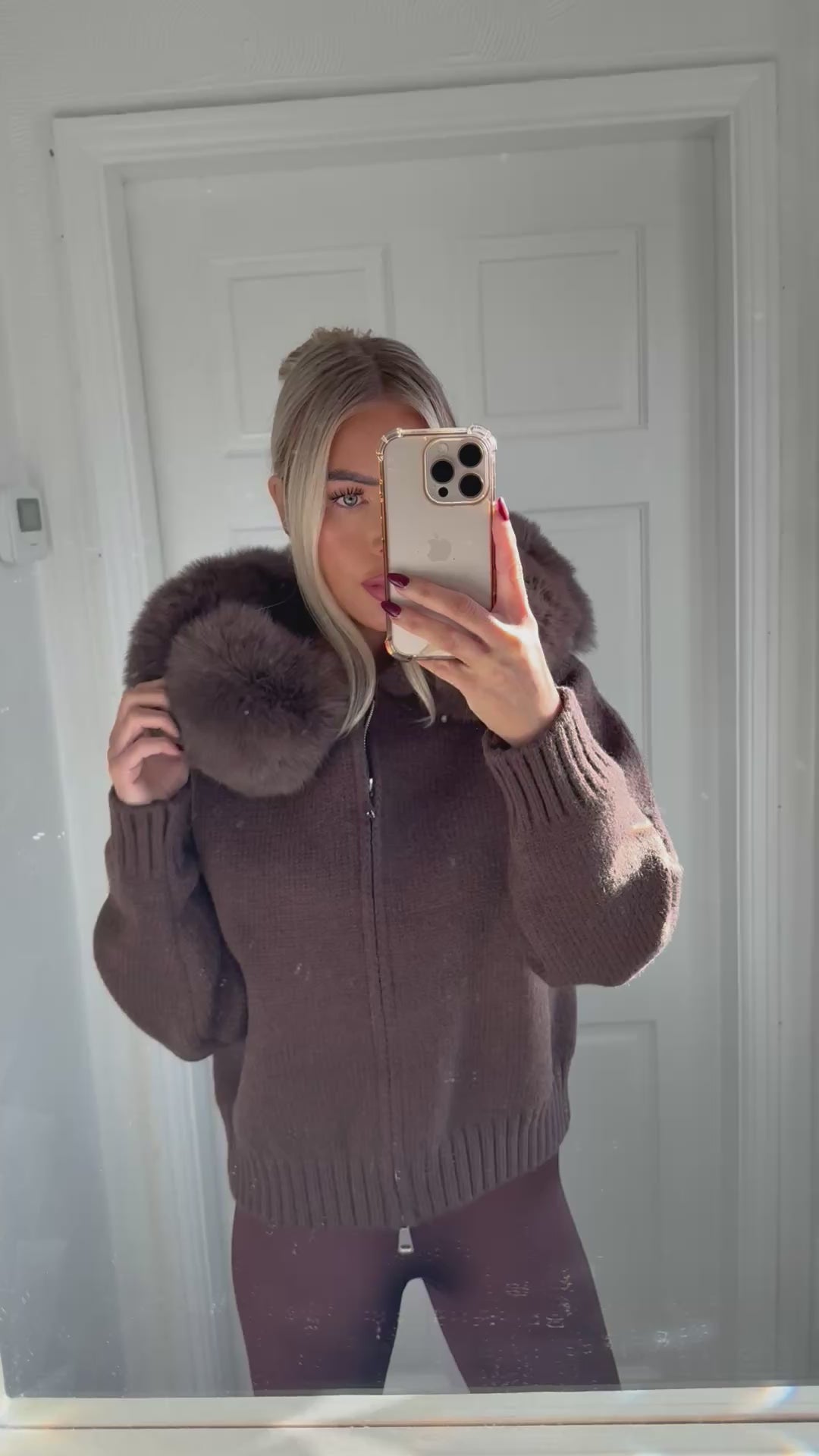 Brown zip up cardigan with the most luxurious fox fur in a bubbled style (can take fur off)