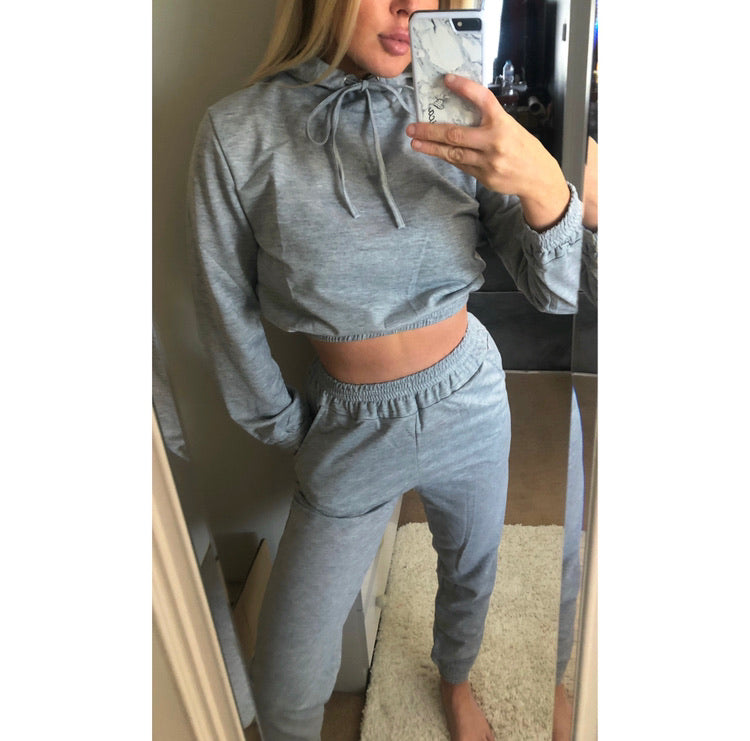One of our faves! Stylish casual wear is a must, love this super comfy grey crop hoodie & jogger set.